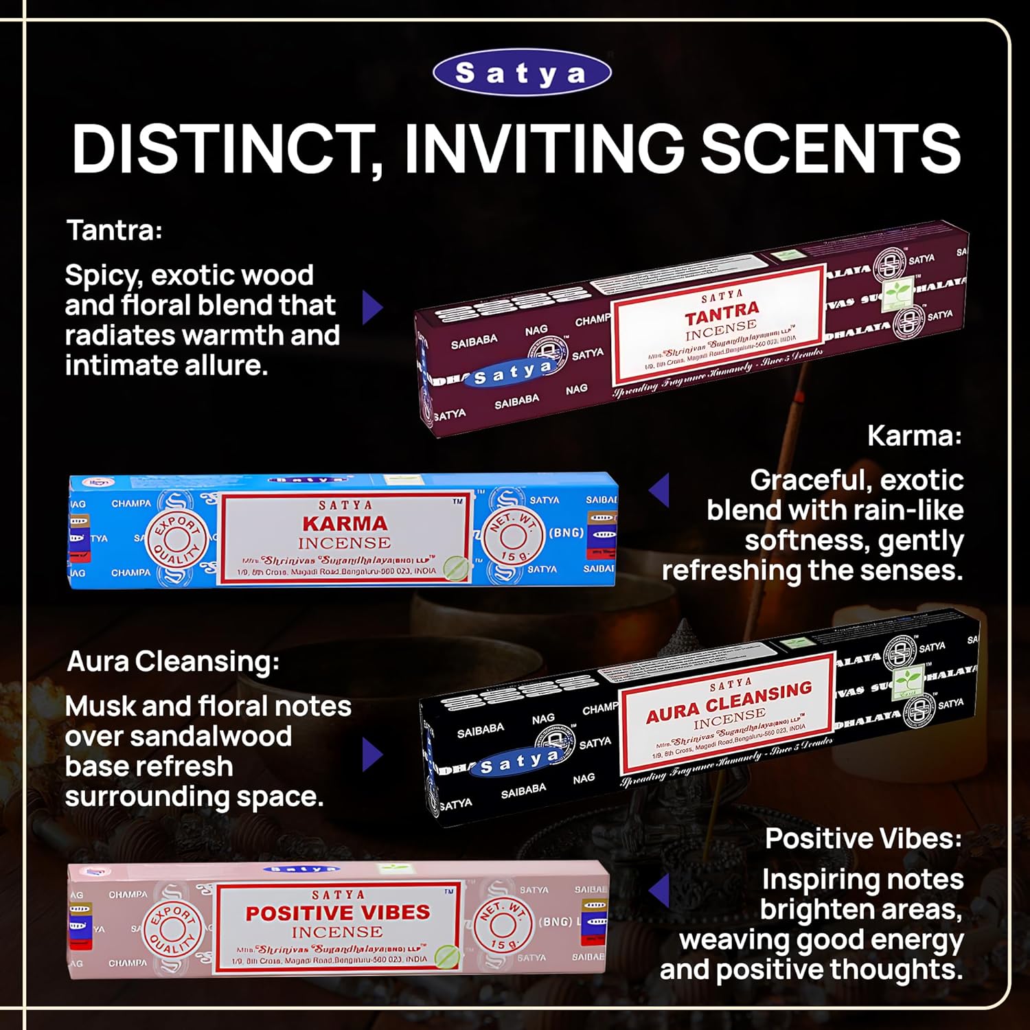 FROM SATYA WITH LOVE – At Satya, we are dedicated to bringing spiritual products straight from India to your home. Our incense is crafted with attention to detail, offering rich aromas designed to refresh, uplift, and rejuvenate your mind, body, and soul, creating a peaceful atmosphere.