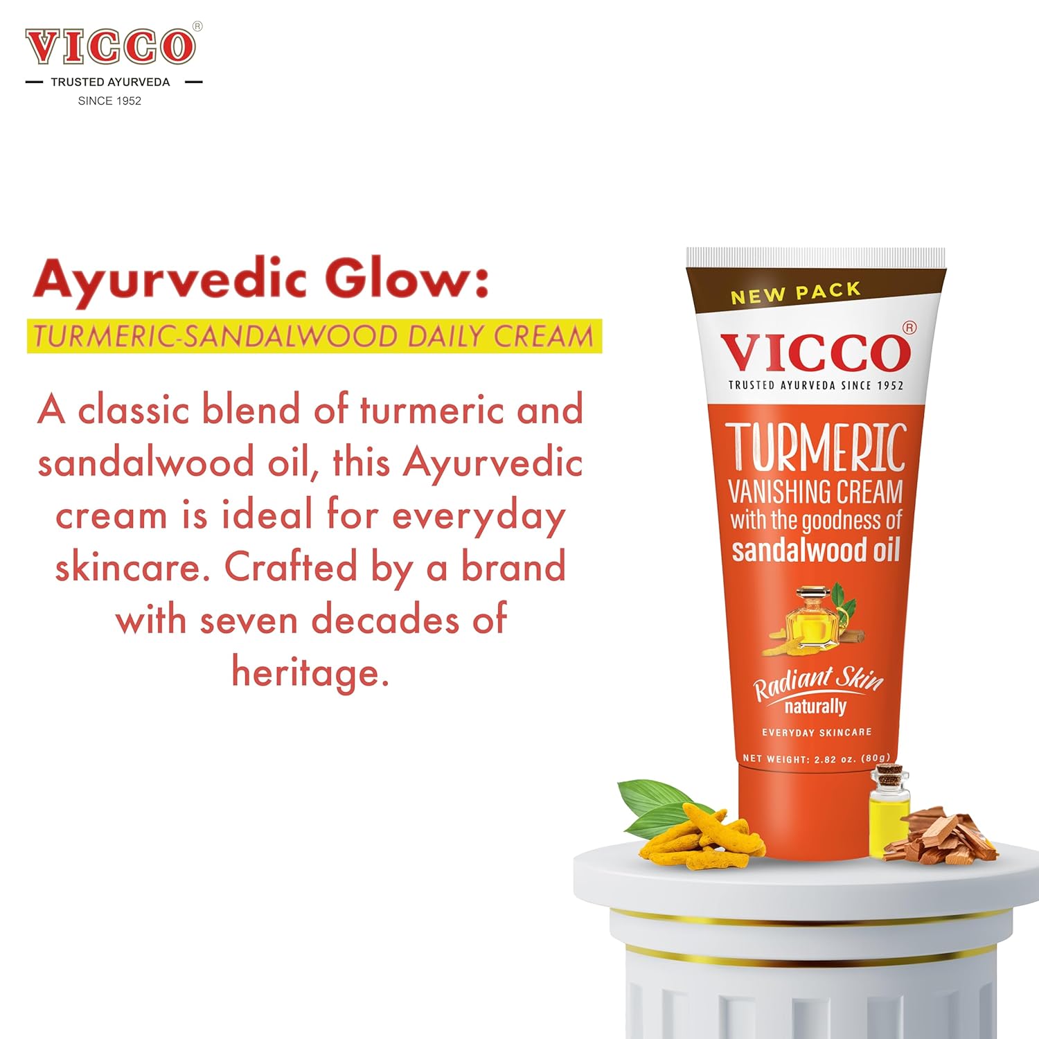 A Legacy of Ayurveda Since 1952: With over 70 years of Ayurvedic expertise, Vicco is one of the oldest and most trusted natural wellness brands. Our Turmeric Skin Cream with Sandalwood Oil is a blend of time-honored ingredients rooted in India’s ancient skincare traditions.