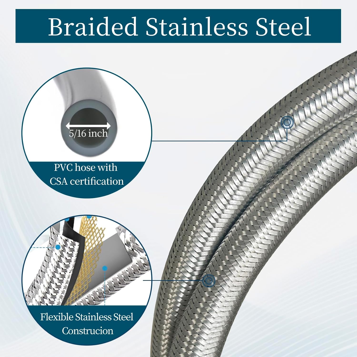 【Industrial-Strength Stainless Steel Braided Hose】 5FT stainless steel braided hose – resists kinks, abrasions, and extreme weather Reinforced rubber core ensures leak-proof performance Withstands temperatures from -40°F to 250°F