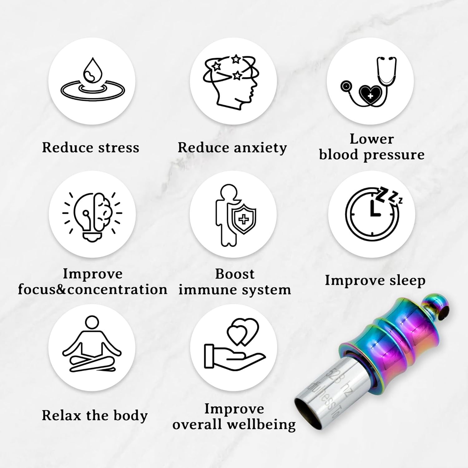【3-STEP CALM SYSTEM】Blow the whistle → Sync with 4-7-8 breathing (in the product manual) → Repeat affirmations for 1-minute anxiety relief. Designed by sound therapists(DR Andrew Weil).