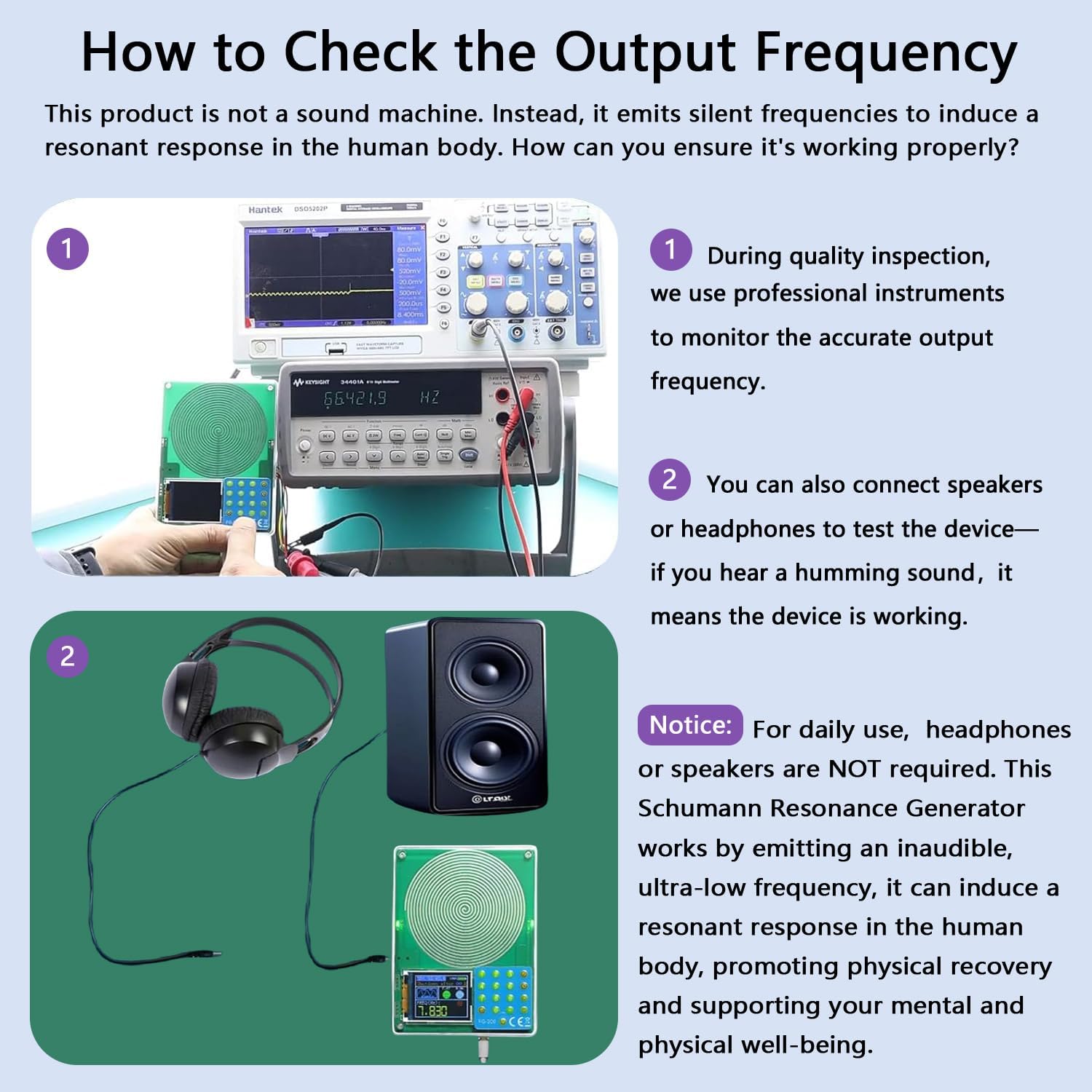 【24/7 Customer Support & Important Notes】Important: This is not a sound machine—no headphones or speakers needed for operation. Using audio equipment may result in audible beeping. This device emits an inaudible ultra-low frequency to create a natural frequency environment for your wellness routine. All products carry a one-year warranty. For any assistance, contact us via messages anytime.