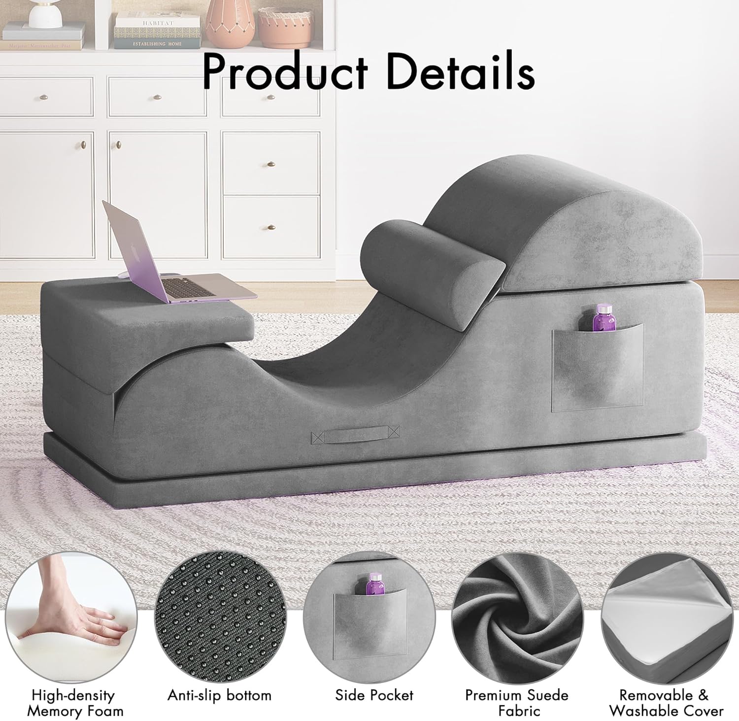 【Yoga Chaise Lounge That’s Never Idle】 This convertible recliner chair adapts to your every move. From light stretches to tough poses, it supports all levels and styles of movement. Perfect for yoga, pilates, meditation, tantra, daily workouts, or relaxation — it helps you stay strong, flexible, and balanced. Always there when you need it — a versatile, high Density Foam lounge sofa for every move and moment.