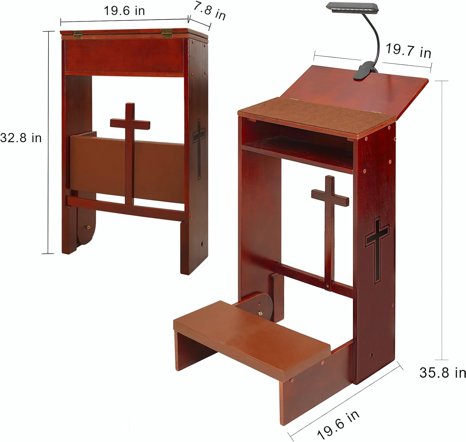 Good Desgin – The prayer kneeler has fold up bench and table top,When you pray, you can recline the Bible on the table top without your hand hold it and put it on the shelf when not in use. The beautiful prayer kneeler has cross printed on both side and wooden cross in the center.Walnut tones complement any church or home décor.