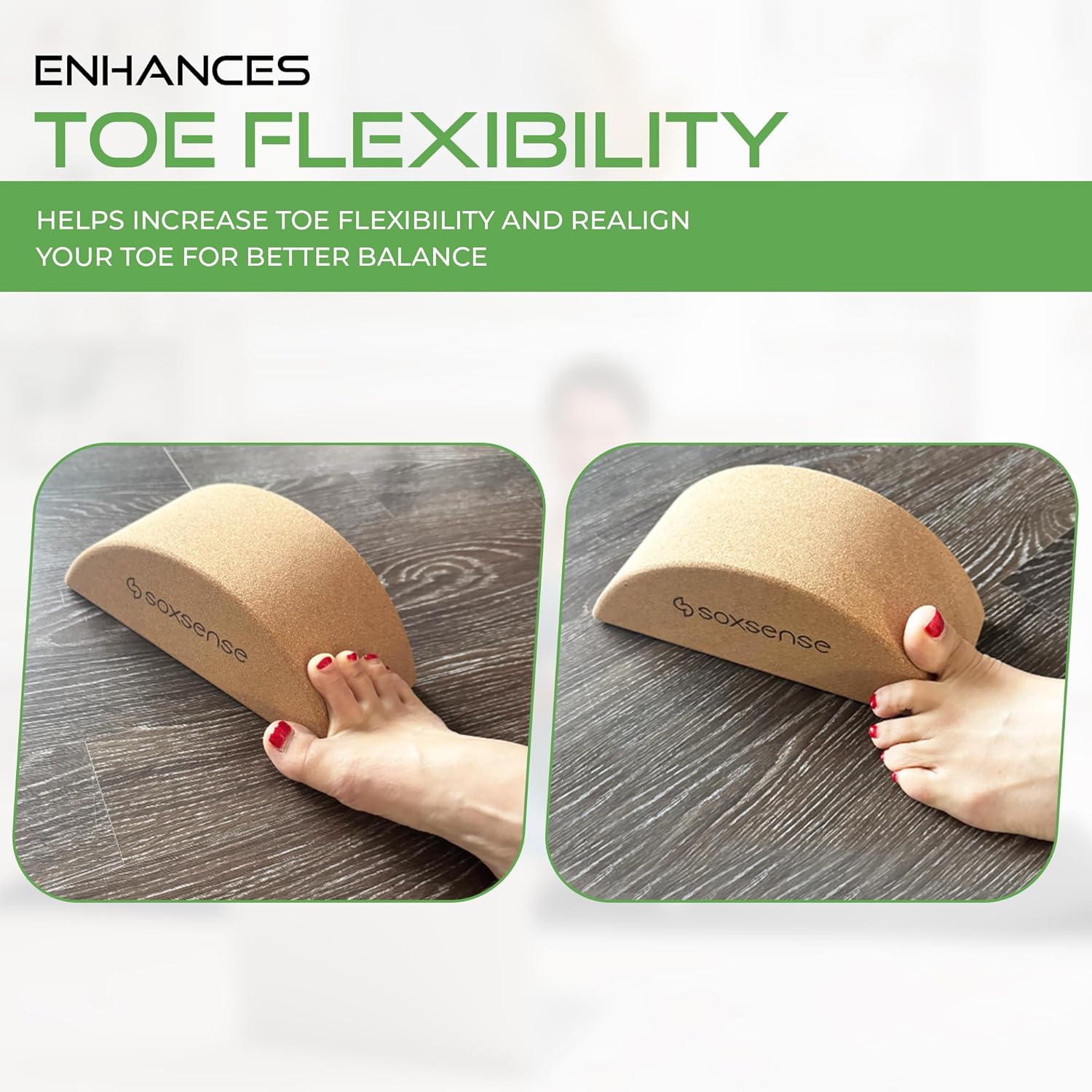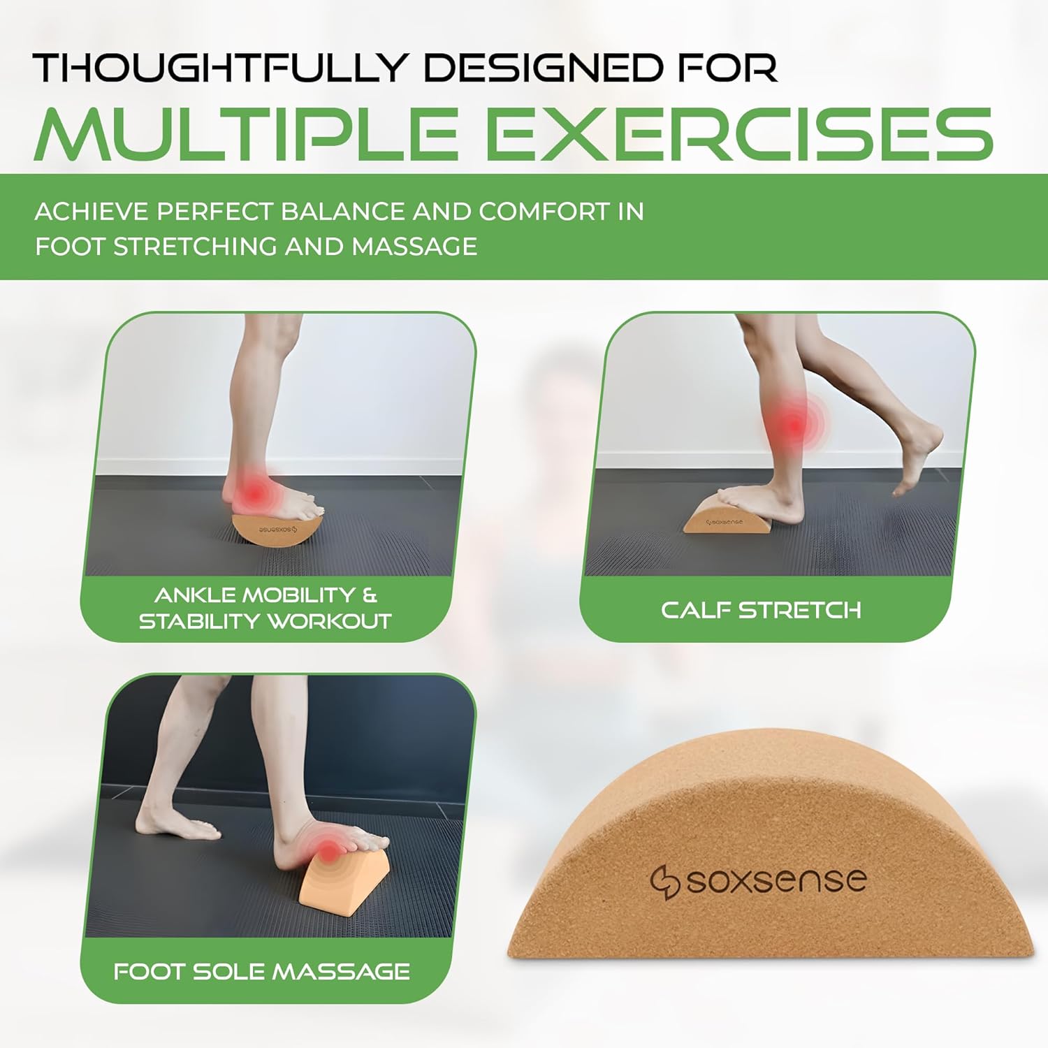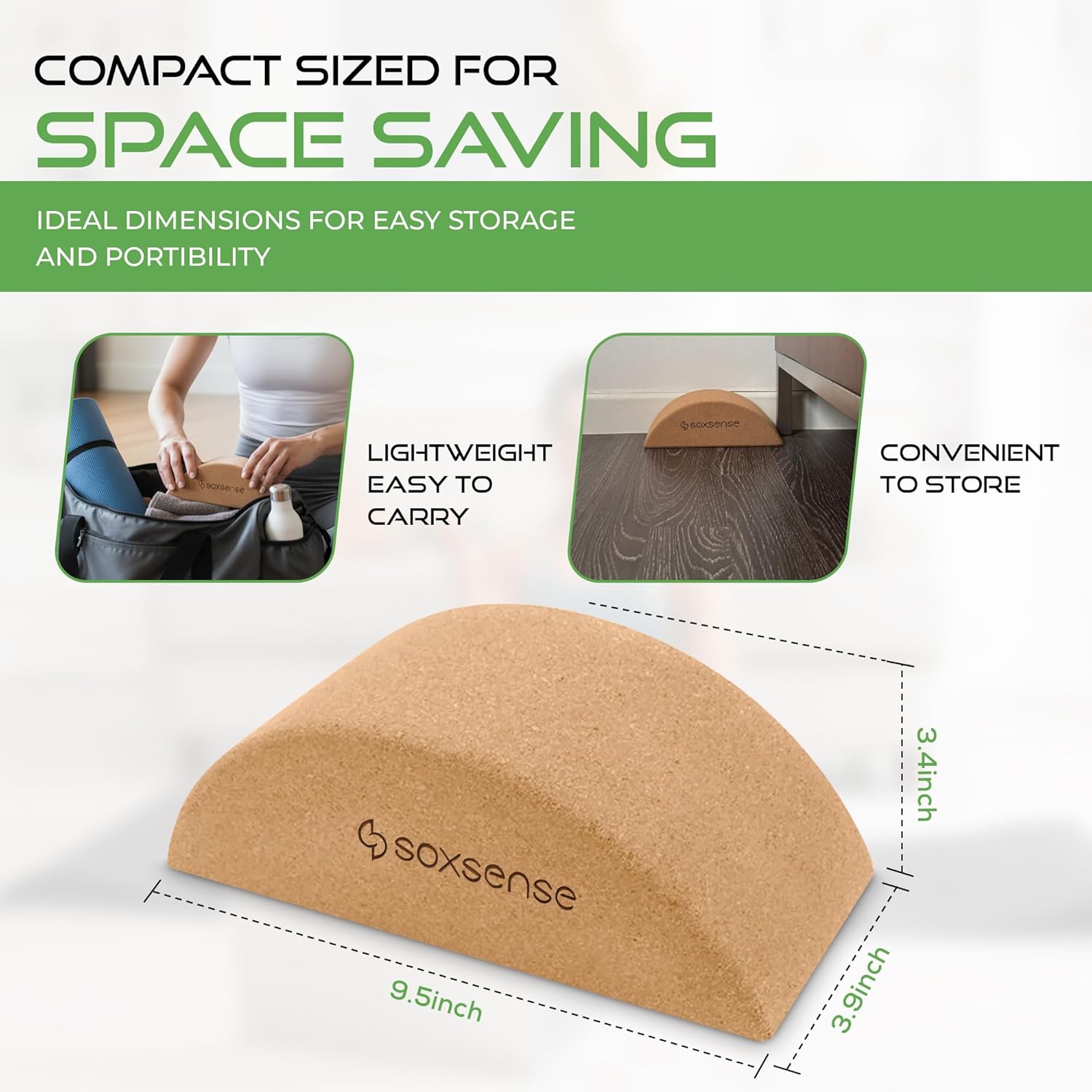 Soxsense Half-Moon Yoga Block – Natural Cork Support for Balance, Flexibility & Foot Strength Experience stability and comfort with the Soxsense Half-Moon Yoga Block, thoughtfully crafted from eco-friendly cork. Its firm, slip-resistant surface provides reliable support during stretches, balance work, and restorative poses, while the natural texture offers a secure grip and grounded feel throughout your practice. The ergonomic half-moon design contours comfortably to your arches, calves, and ankles, promoting proper alignment and helping you relax deeper into stretches without putting pressure on your joints or muscles. Compact yet sturdy, this block measures 9.5 x 3.9 x 3.3 inches—perfect for your gym bag, studio sessions, or home workouts, foot Home Balance. Use it to improve flexibility, stability, and posture through a wide range of exercises, from seated folds and lunges to ankle mobility and balance training. Whether you’re just beginning your movement journey or refining your yoga technique, the Soxsense Half-Moon Block is a versatile, travel-friendly essential for building foot and ankle strength and supporting overall balance and body awareness.
