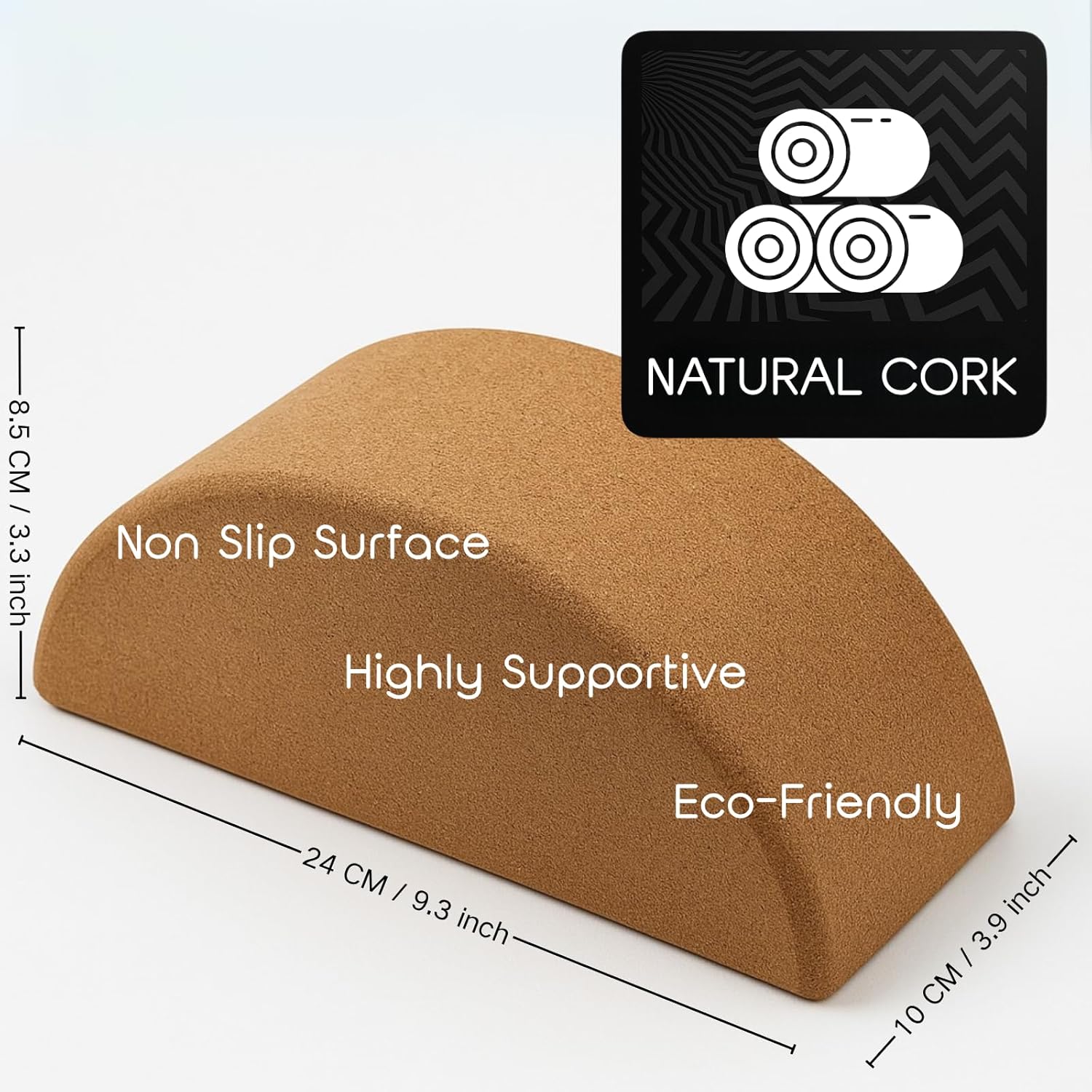 The cork material offer more stability and support due to their higher density. The textured surface ensures firmness and comfort during stretching.