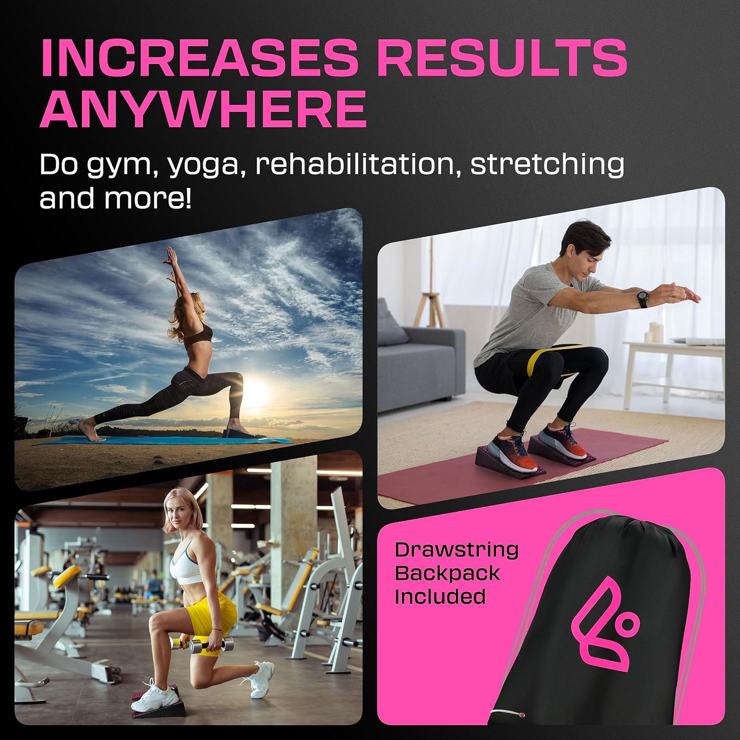 IMPROVE DEPTH, BALANCE & FORM: Elevate your squats with our “Pink Power” Squat Wedge Block Pair, featuring a 17° heel lift for superior squat support. These squat wedges enhance flexibility and muscle activation—targeting your quads, glutes, hamstrings, and calves for deeper, safer training. Perfect for squats, calf stretches, and weightlifting—designed to help you train deeper, stronger, and smarter as you work toward your New Year fitness goals.