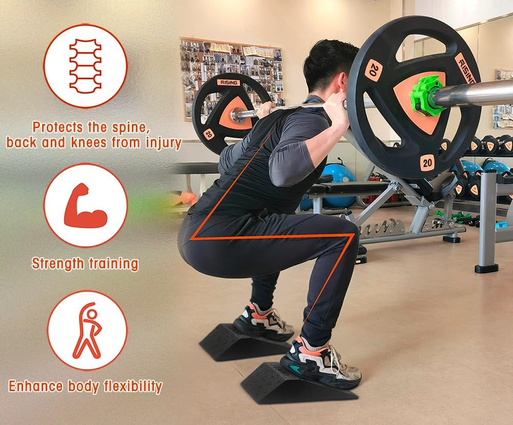 Promotes a balance between strength and flexibility to avoid muscle and knee injuries due to weak heel support during weightlifting squats