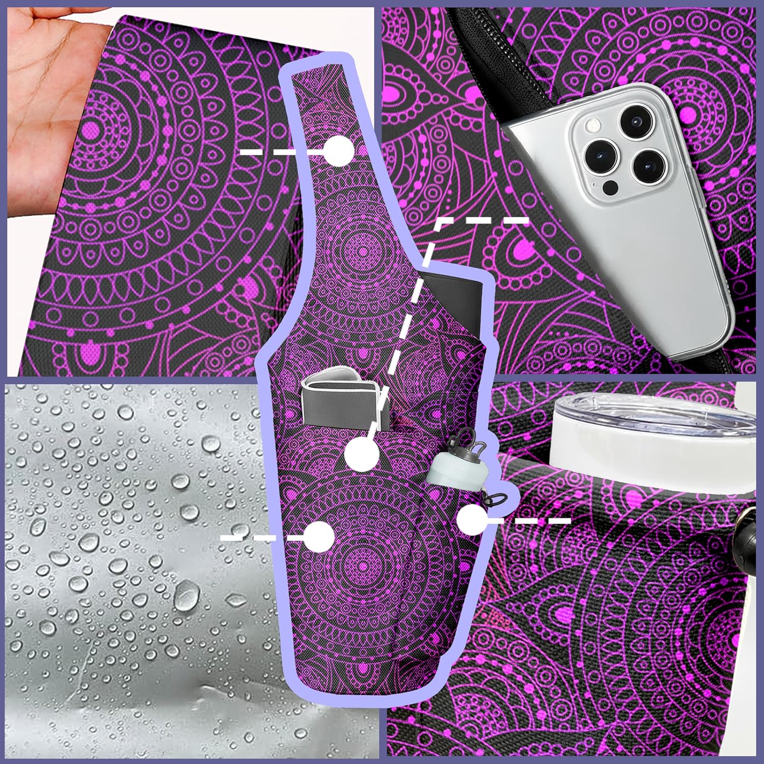 Yoga mat won’t fall out: We’ve seen those short yoga bags and carriers too – you know the ones that seem large, but the mat still sticks out, making the tote bag feel uneven. Yoga Tote Bag is 33.5 inches long, and only 25% of the mat sticks out the top! So go ahead, measure your hot yoga mat or Pilates mat now, and if it’s 24 inches wide, then this is the yoga carrier you were looking for today。