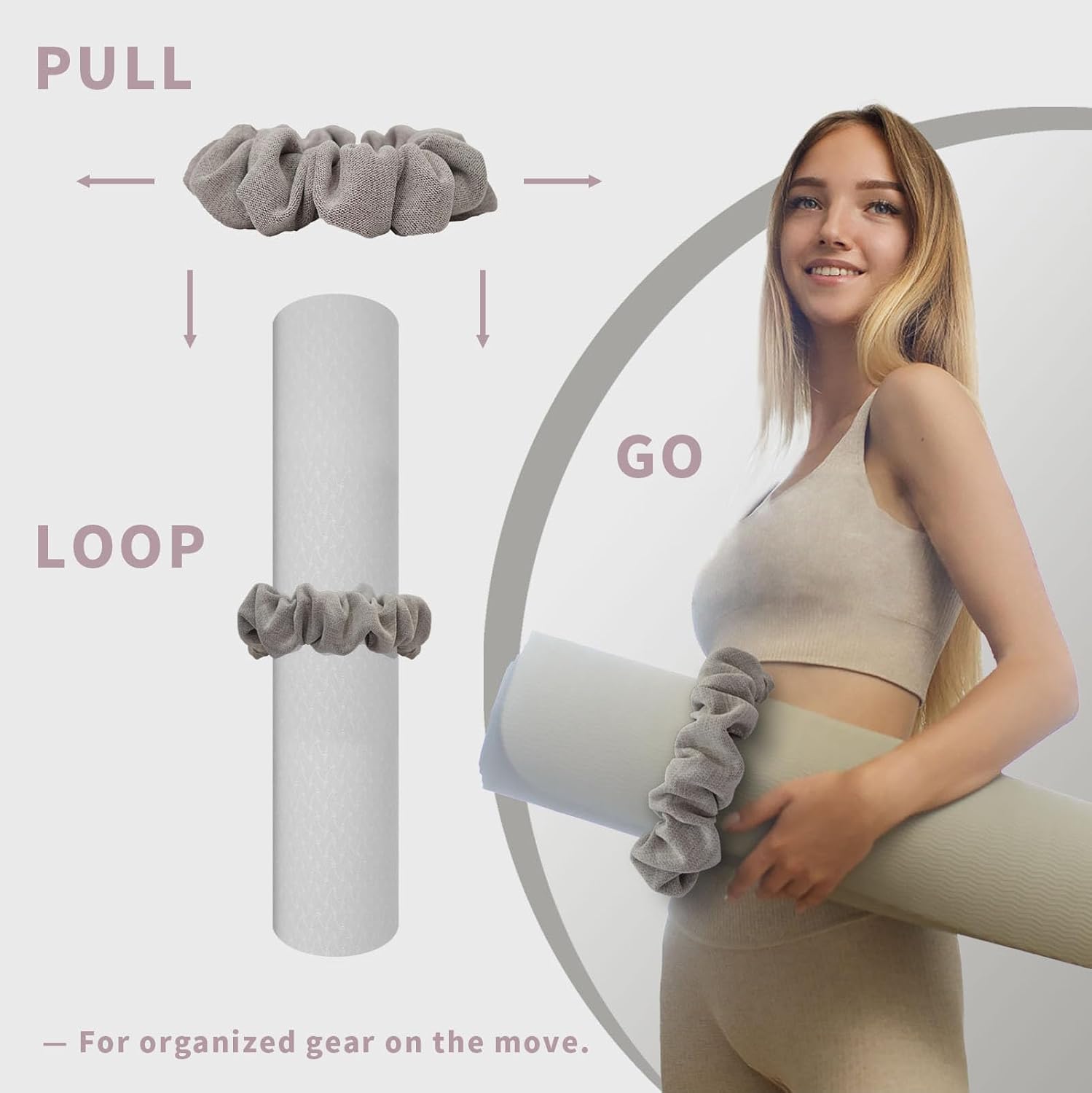 Carry Your Mat in Style – With the Yoga Mat Scrunchie Say goodbye to bulky straps and complicated buckles. The Yoga Mat Scrunchie is a sleek, stretchable solution for carrying your mat with ease. Designed for active, on-the-go lifestyles, it wraps securely around your standard-size yoga mat and holds it tightly in place—no slipping, no fraying, no fuss. Whether you’re heading to a sunrise class or flowing at home, this yoga mat strap adds a touch of flair while keeping things functional. Made from soft, premium fabric that’s as durable as it is fashionable, it’s the ideal companion for yogis, pilates lovers, or anyone who wants to elevate their wellness gear. Product Dimensions – 8” x 8” x 3” per Scrunchie. Mat not included. Works best with standard mats (not designed for oversized or extra-thick mats).