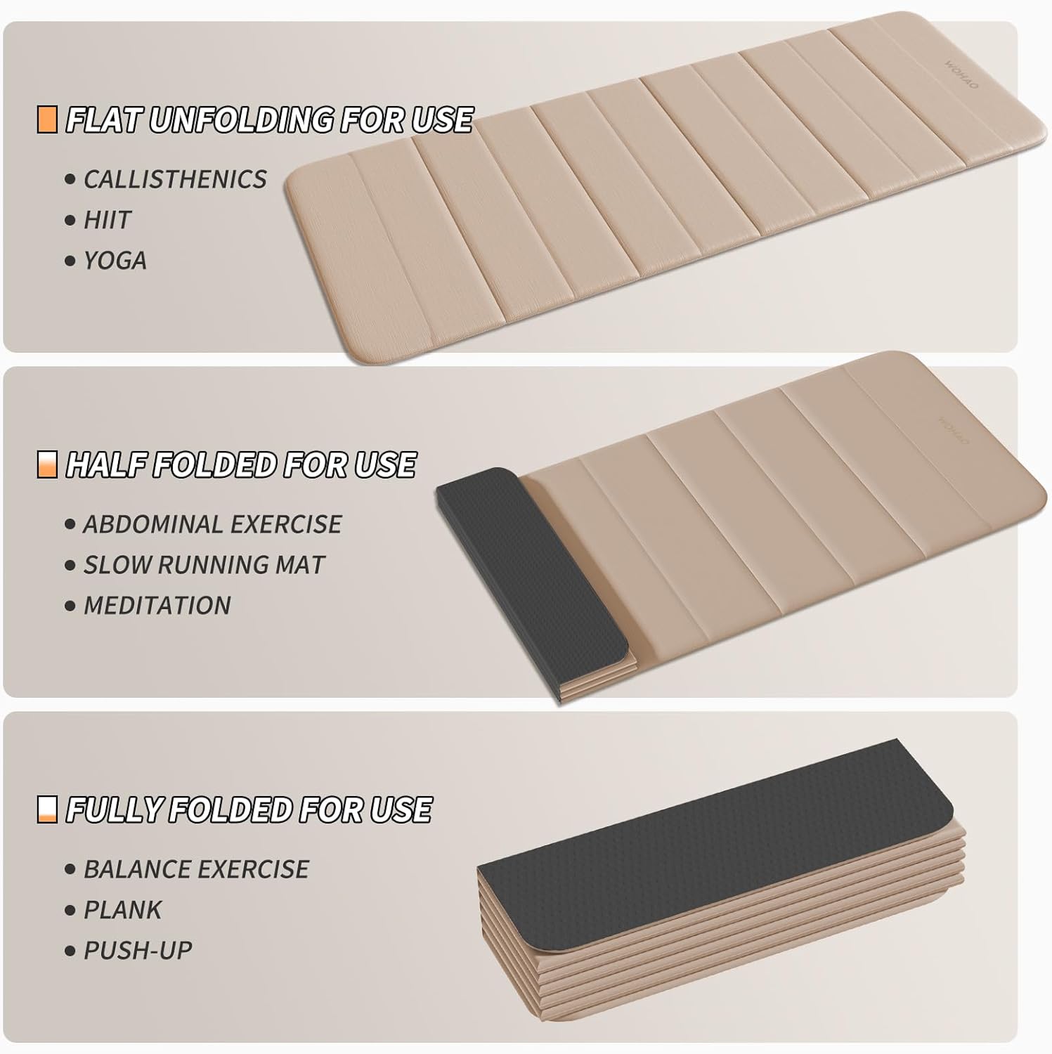 WOHAO 12-Fold POE Yoga Mat 75x26x0.4 Inches – Non-Slip, Compact & Workout-Friendly for Yoga, Pilates, Strength Training & Meditation