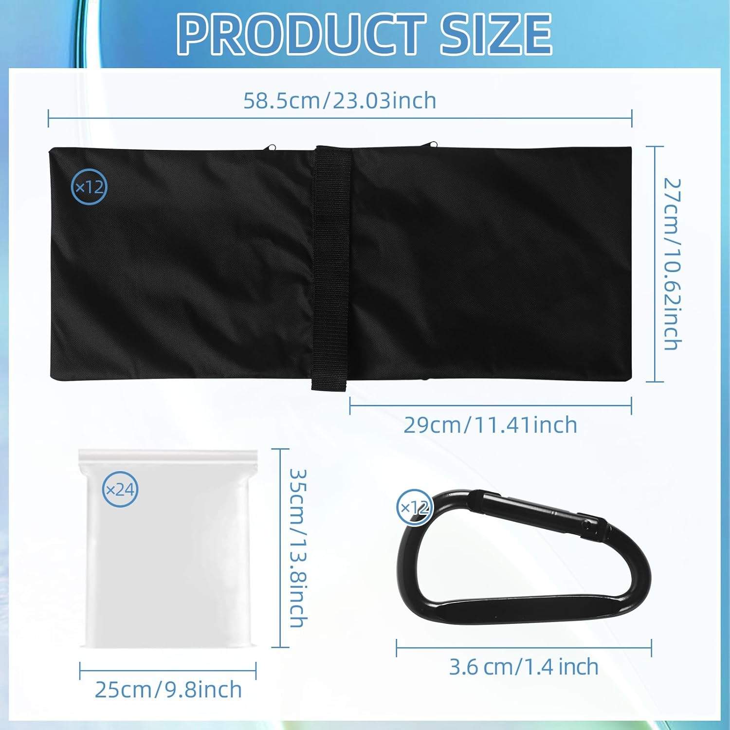Package Include: 12pcs photography sandbags come with 12pcs aluminum carabiner clips and 24 PE sealed bags, lightweight and easy to carry; Note:these sandbags are empty and can not hold water directly