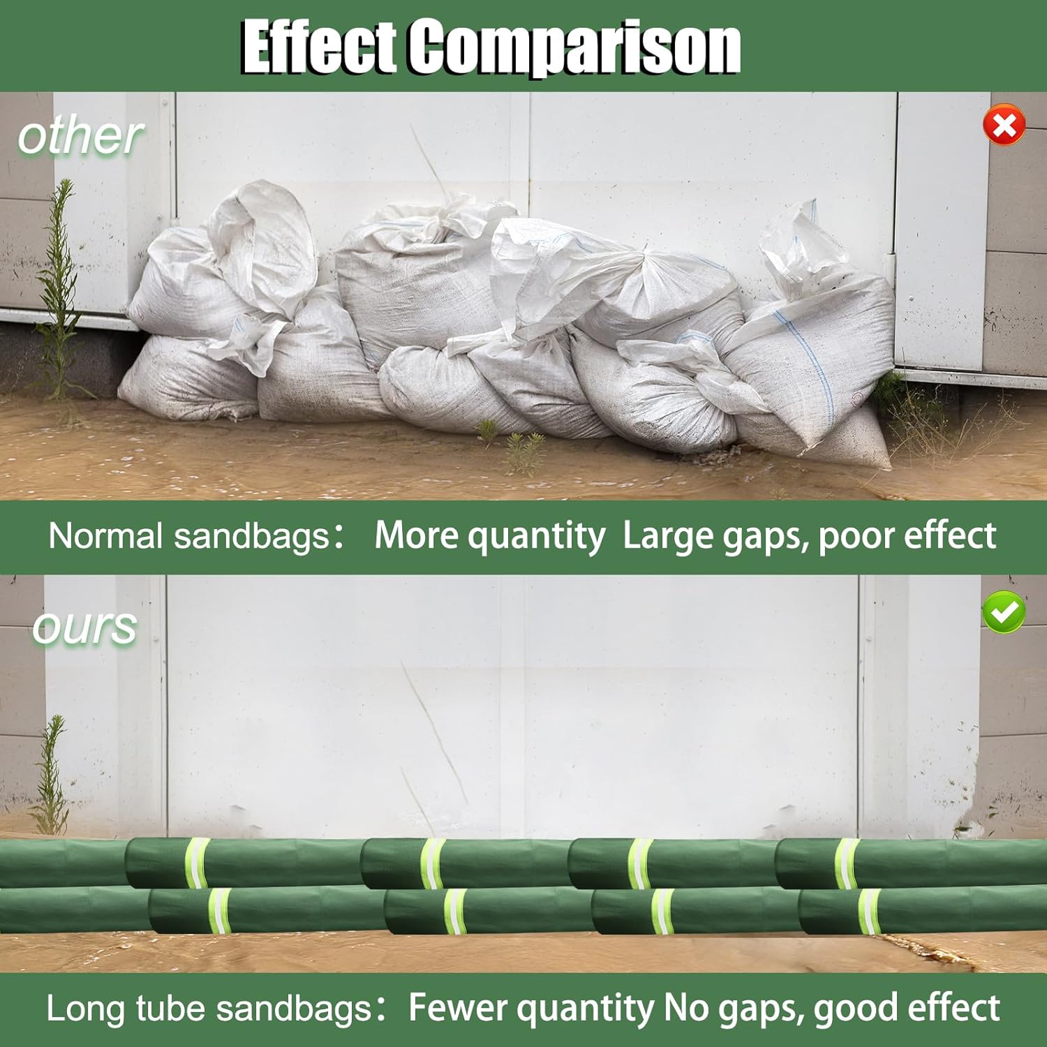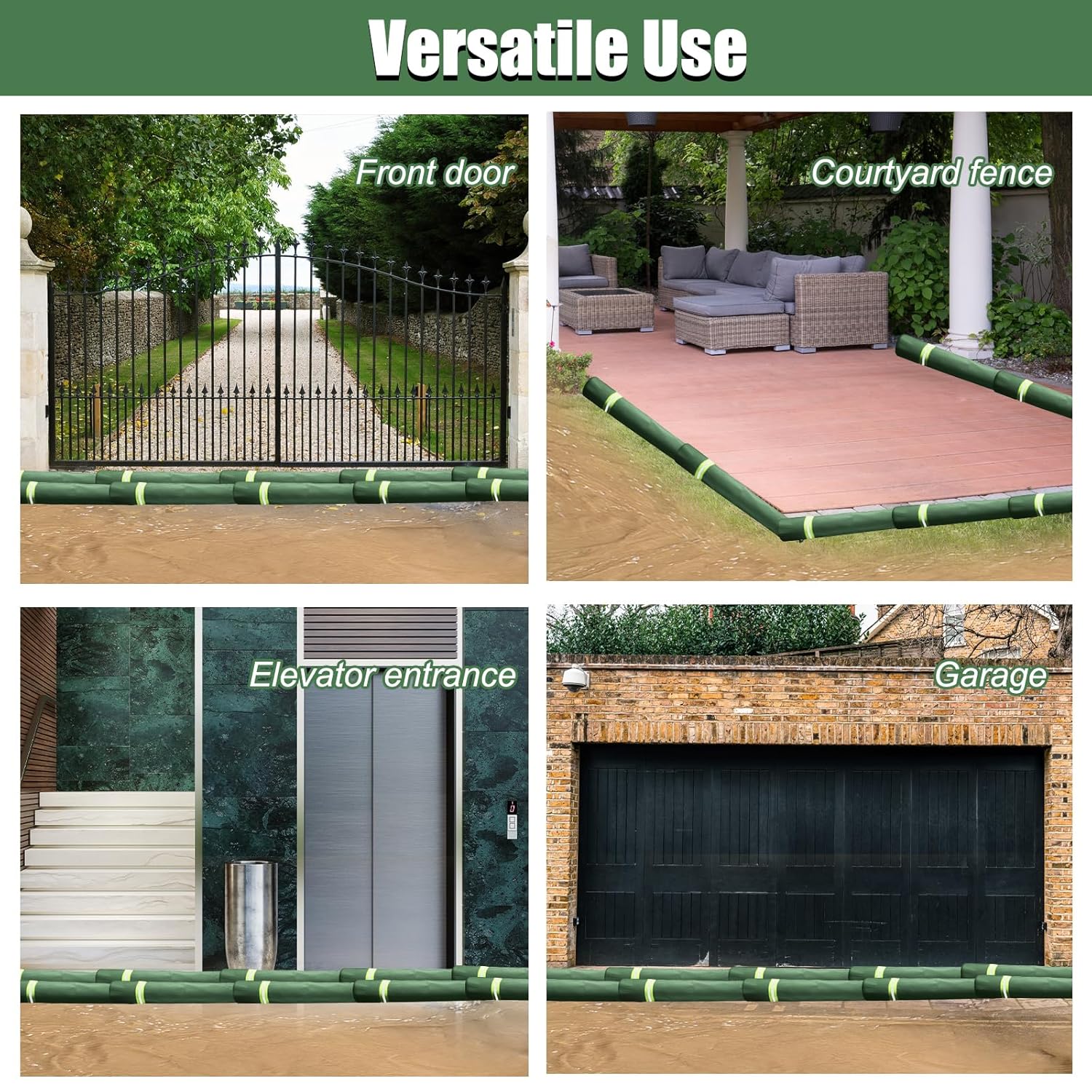 【Versatile Use】: Flood sandbags are highly adaptable, perfect for protecting doors, windows, walls, garages, basements, skylights, elevator entrances, gardens, sewers, fences, parking lots, community gates, supermarket entrances, schools, hospitals, subway stations, workshops, and more. Essential for defending against heavy rain, floods, hurricanes, and mud damage