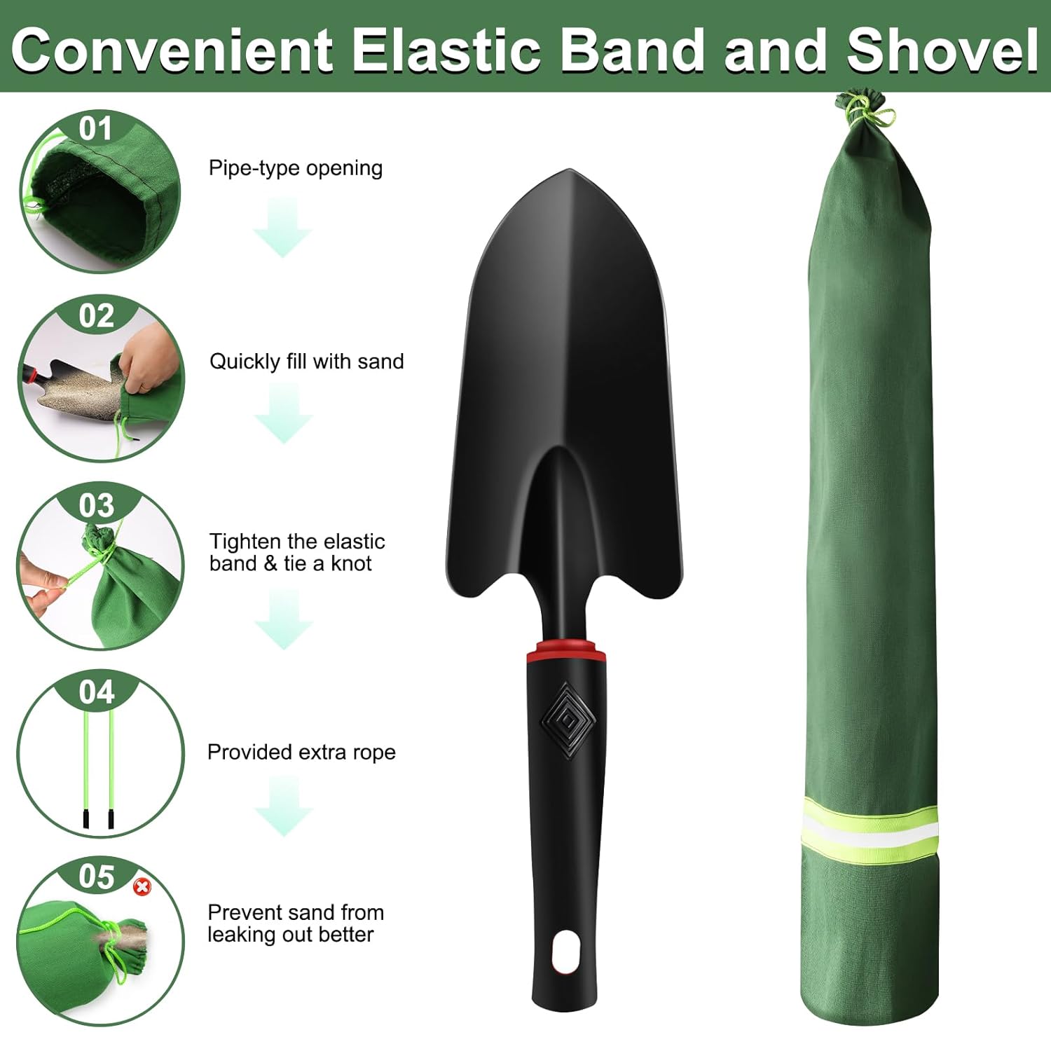 【Elastic Band Design】: The sand you worked so hard to fill up wants to slip away? From now on, not anymore! Our long sand bags feature a tubular opening with a drawstring elastic band. After filling with sand, simply pull the string tight to prevent any sand from spilling out. Plus, we’ve included 4 extra strings for even more secure fastening