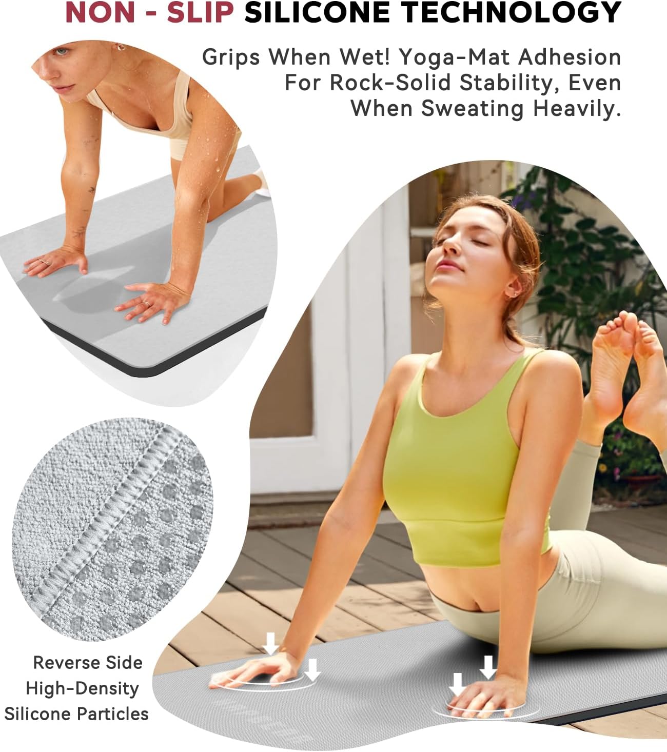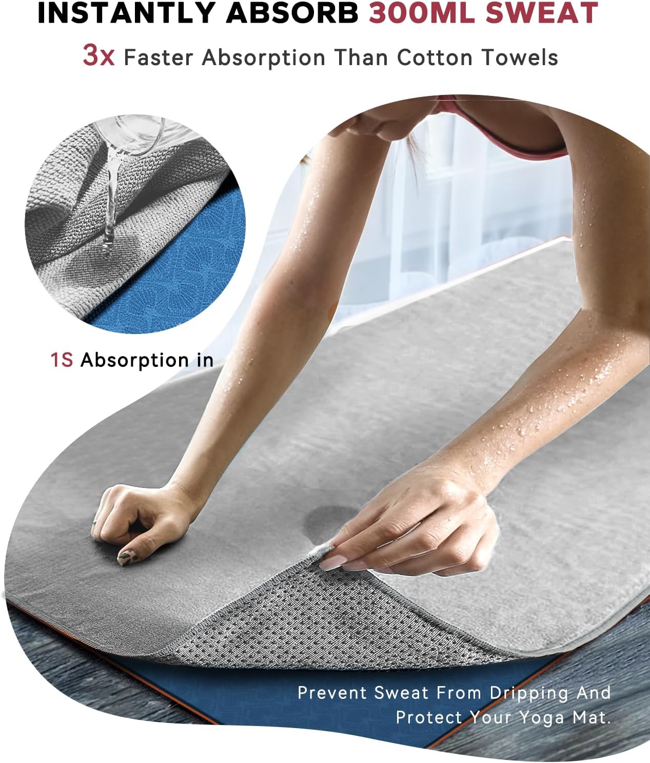 【Non-Slip Grip & Sweat Absorption】The underside features silicone grip dots to keep the towel securely in place during practice while offering mild acupressure. The absorbent top layer wicks moisture quickly, helping you avoid slips.