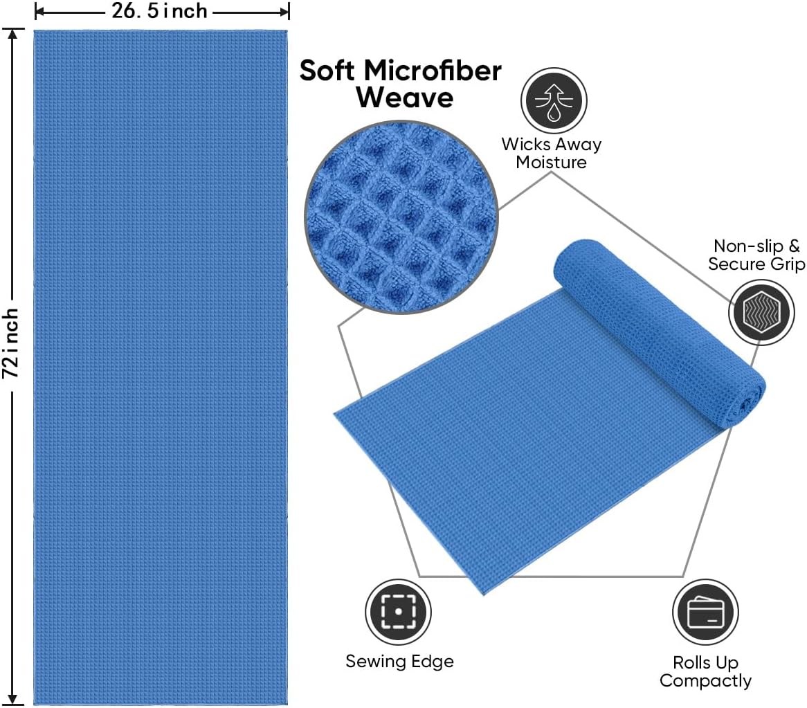 Waffle-Textured for Superior Quick-Dry & Sweat Control: Featuring an innovative waffle-weave design that maximizes surface area and airflow, this towel rapidly absorbs and evaporates sweat to keep you dry and comfortable. Made from premium microfiber, yoga mat towel is ideal for hot yoga, Pilates, Vinyasa, and other intense workouts